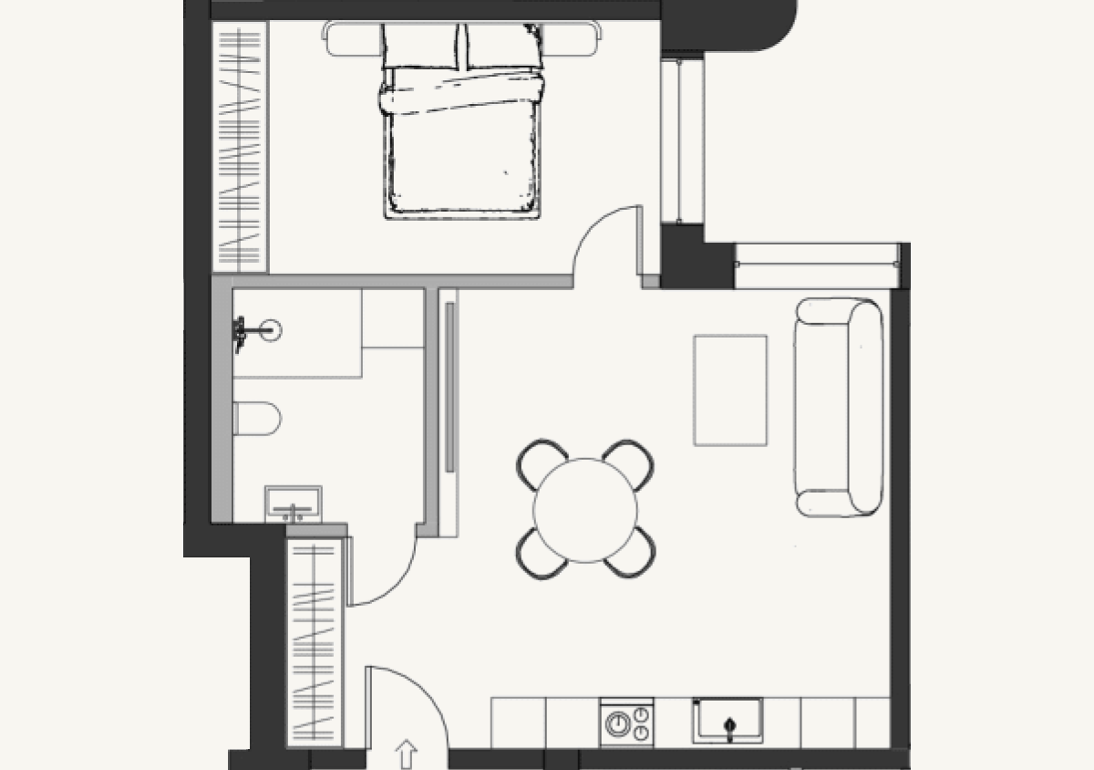 Dzīvokļi sagatavoti individuālai apdarei – bez starpsienām, lai katrs īpašnieks var pielāgot telpu atbilstoši savām vēlmēm un dzīvvestilam.