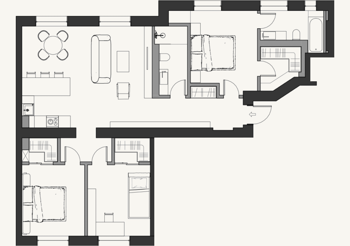 Dzīvokļi sagatavoti individuālai apdarei – bez starpsienām, lai katrs īpašnieks var pielāgot telpu atbilstoši savām vēlmēm un dzīvvestilam.