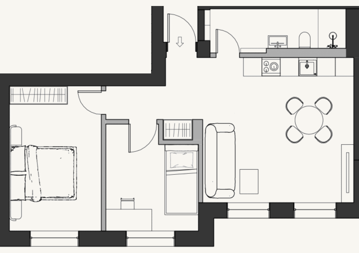 Dzīvokļi sagatavoti individuālai apdarei – bez starpsienām, lai katrs īpašnieks var pielāgot telpu atbilstoši savām vēlmēm un dzīvvestilam.
