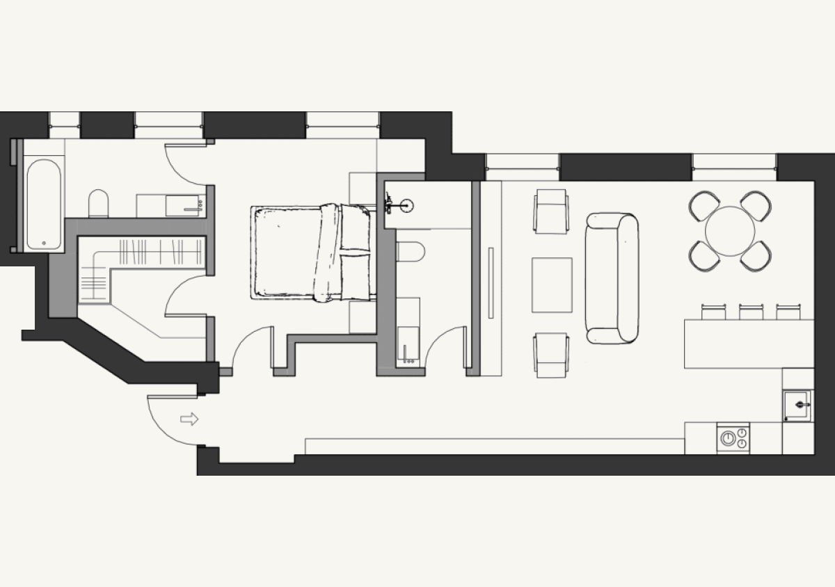The apartments are offered in customisable shell condition, without partition walls, allowing each owner to design the space to suit their own preferences and lifestyle.